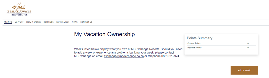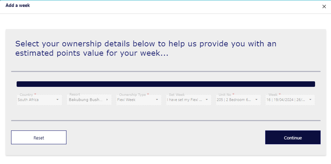 Step 3: Select "ADD A WEEK” and input your ownership details.