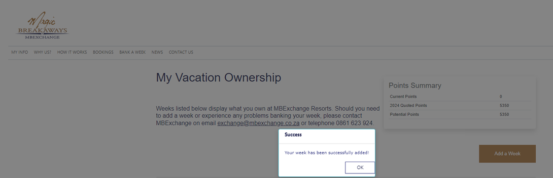 Once your week is accepted, you will receive notification confirming the finalisation of the banking.